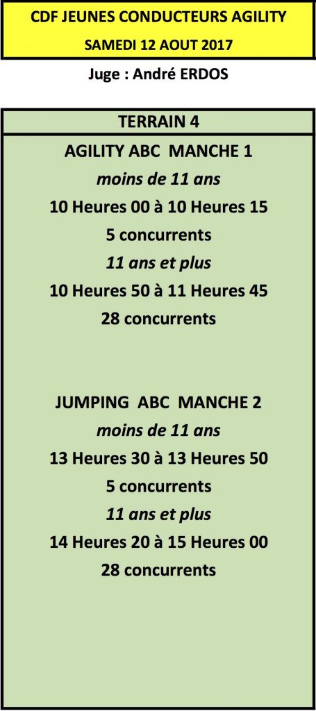 Agility Jeunes Championnat de France d’Agility des Jeunes Conducteurs 2017 – Programme et liste des inscrits par David (gt-internet)|Publié 2017-08-08 Liste des inscritsChampionnat de France d'Agility des Jeunes Conducteurs 2017