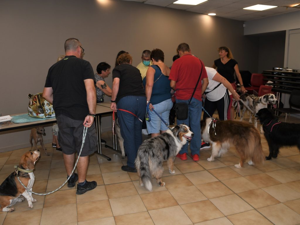 Un grand merci au club les Cani’Kazes de m’avoir une nouvelle fois invitée à animer ce stage. En amont du stage, Christine qui avait en charge l’organisation, a mené de main de maître la gestion des inscriptions, la réalisation des dossiers à produire aux stagiaires. Le stage en lui-même s’est poursuivi sur la même ligne de conduite, ce qui est confortable ! J’ai retrouvé avec grand plaisir un bon nombre d’équipes Chiens Visiteurs que j’avais eues le plaisir de valider et qui étaient présentes en tant que bénévoles : Robert, Geneviève, Valérie, Sylvie, Corinne, Uriell, Marc. Merci aux autres bénévoles qui se sont joints à nous. Le stage s’est déroulé dans de bonnes conditions malgré la chaleur (les ventilateurs étaient en nombre suffisant pour nous amener un peu de fraîcheur), dans la bonne humeur et avec sérieux. Merci aux bénévoles pour leur talents de comédiens, merci aux stagiaires de m’avoir présenté de bons chiens. Félicitations, bienvenue et belle aventure à ces nouveaux binômes Chiens Visiteurs.