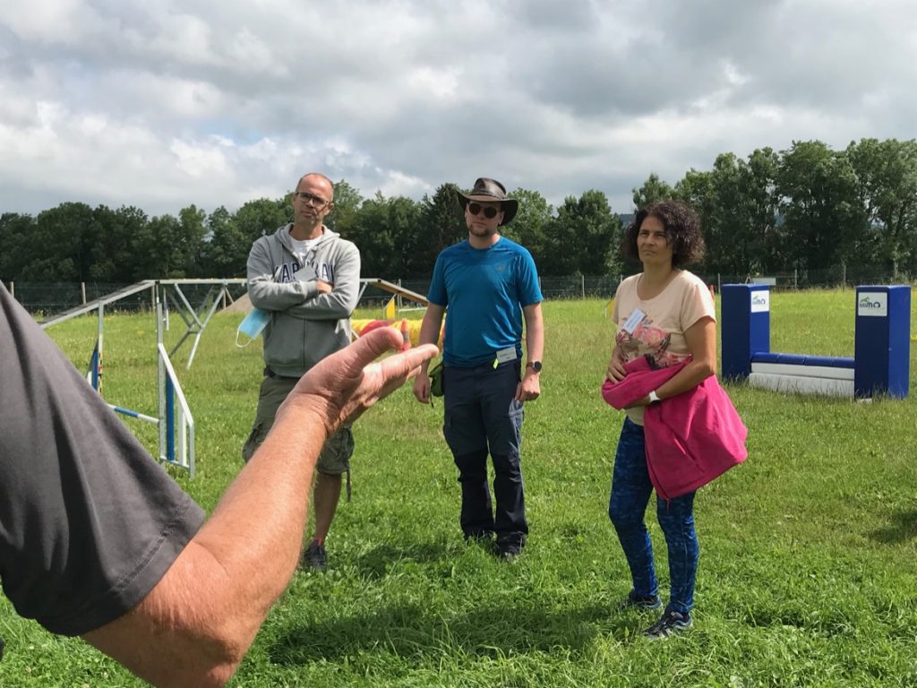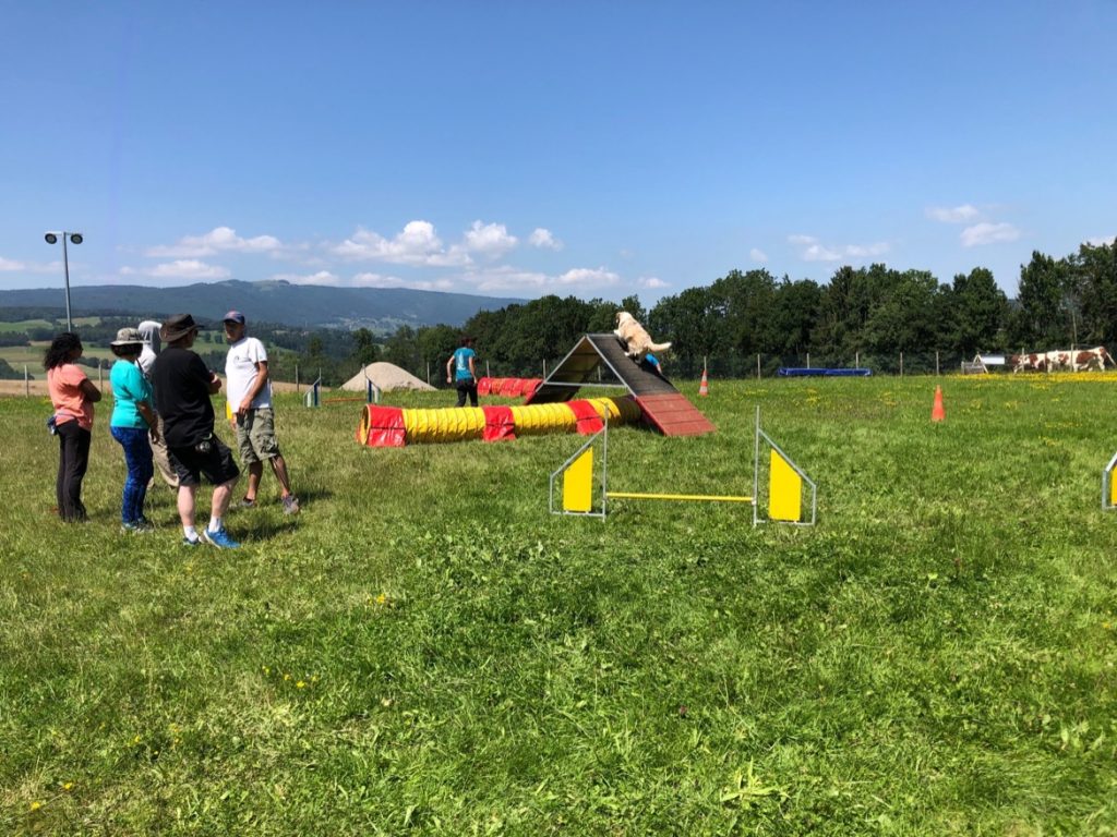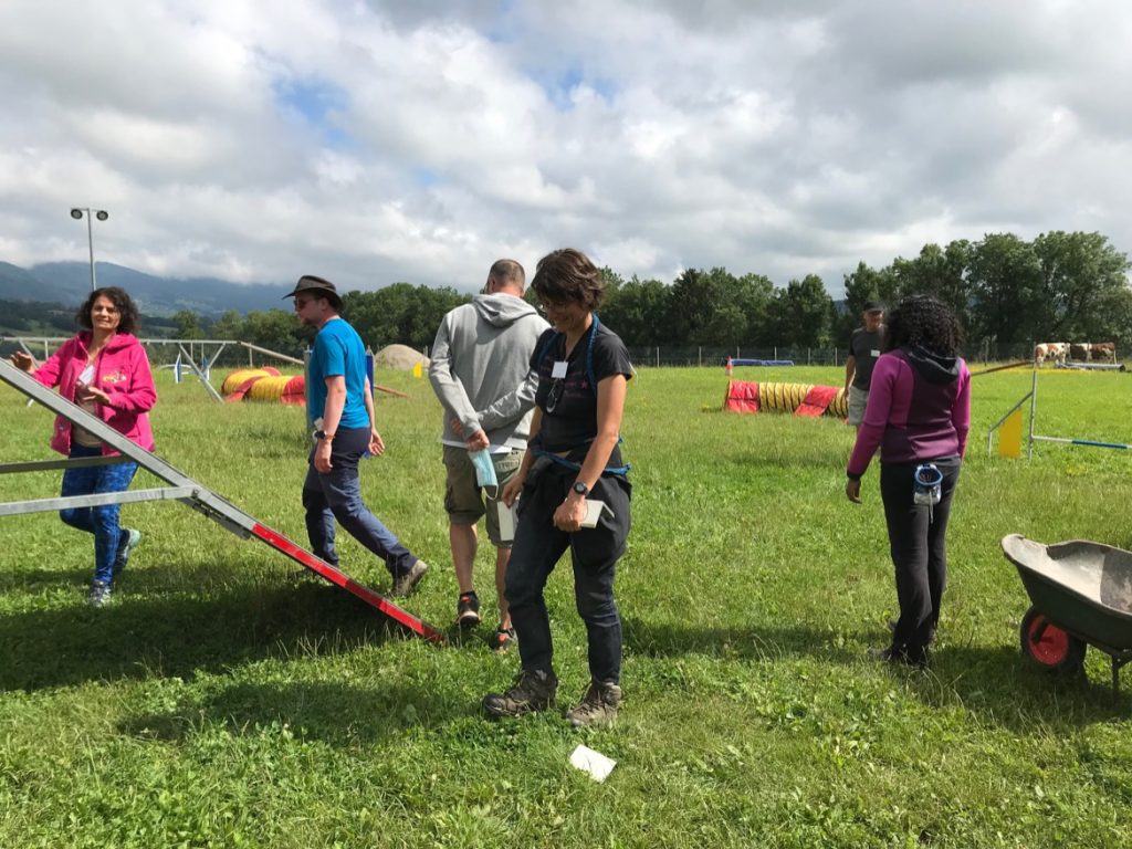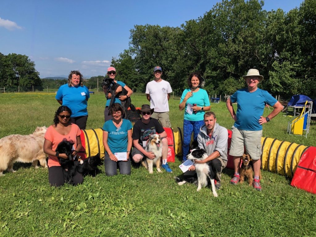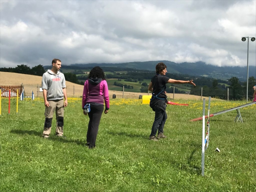 Le soleil radieux et un zef prononcé ont réussi à sécher suffisamment les terres détrempées du club A’Croc Chien 74 (Haute Savoie) pour que ce troisième module de monitorat d’agility niveau 1 puisse se dérouler dans de bonnes conditions.