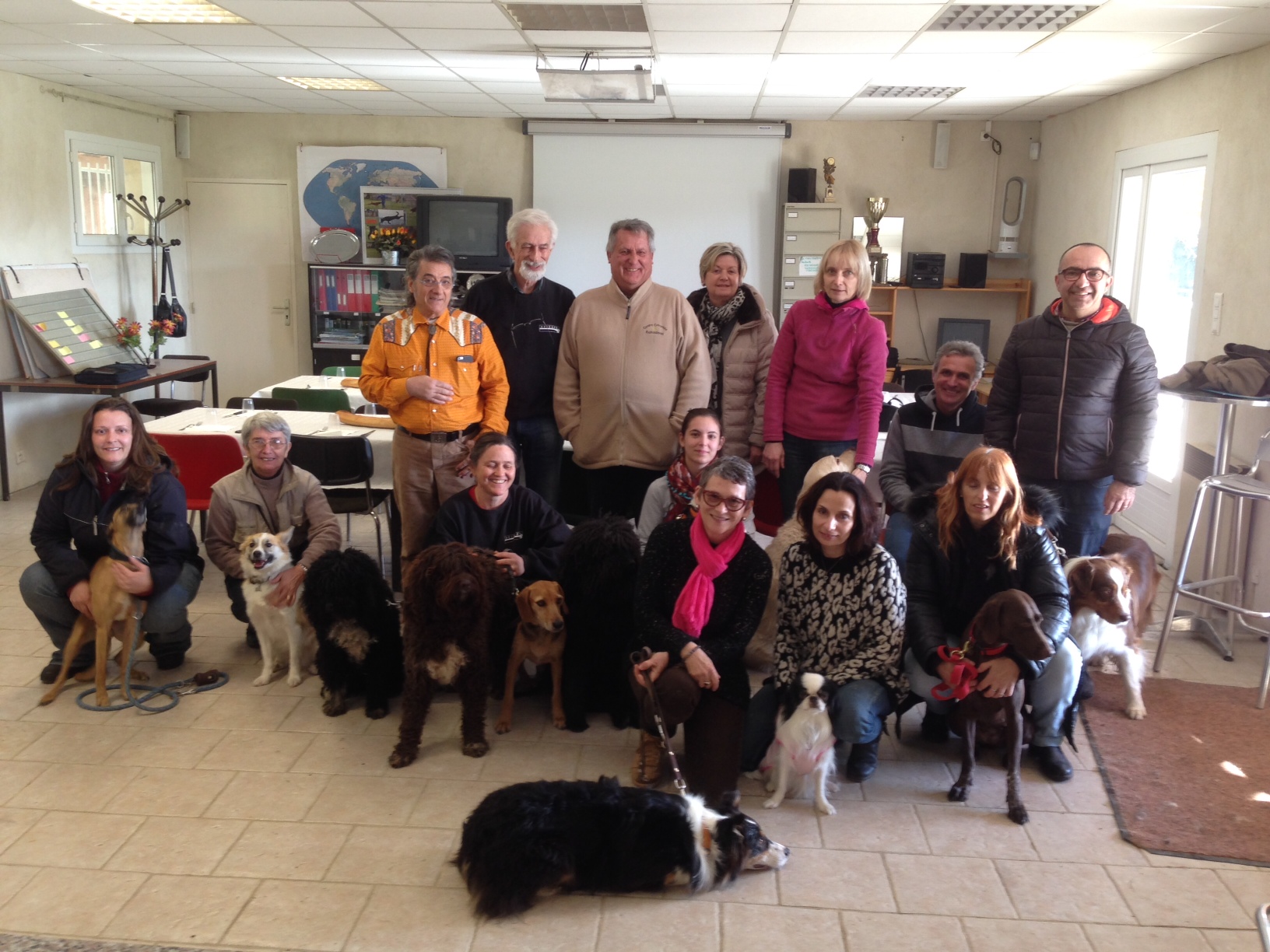 Le stage « Chiens visiteurs » référence n° : 20141221 à eu lieu au Club de Dressage d’Avignon les 31 janvier et 1er février sous la conduite de monsieur André Martin. Avec comme moniteurs madame Nicole Ribert et messieurs Bernard Fourcand et Gérard Mus.