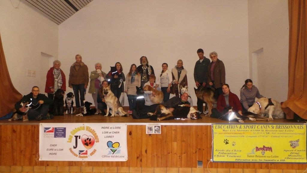Nous remercions la municipalité de St Brisson sur Loire pour le prêt de la salle. La formation était animée par Sylvie CLENET, également déléguée « Chiens Visiteurs » du Centre. Les stagiaires, au nombre de 14 accompagnés de leur chien (15), venaient de différents clubs :