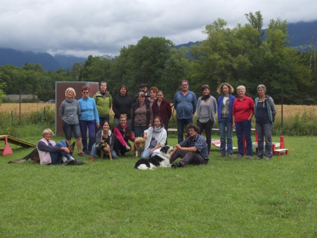 En ce premier week-end de juillet le club du CCUMB (Club du Chien d’Utilisation du Mont Banc), organisait un stage école du chiot. Marie-Odile BALLET-BAZ n’a pas ménagé ses efforts dans l’organisation de ce week-end de formation et d’échange. Cadre magnifique : le club étant situé au pied du mont-blanc que nous n’avons pas eu la chance d’apercevoir …